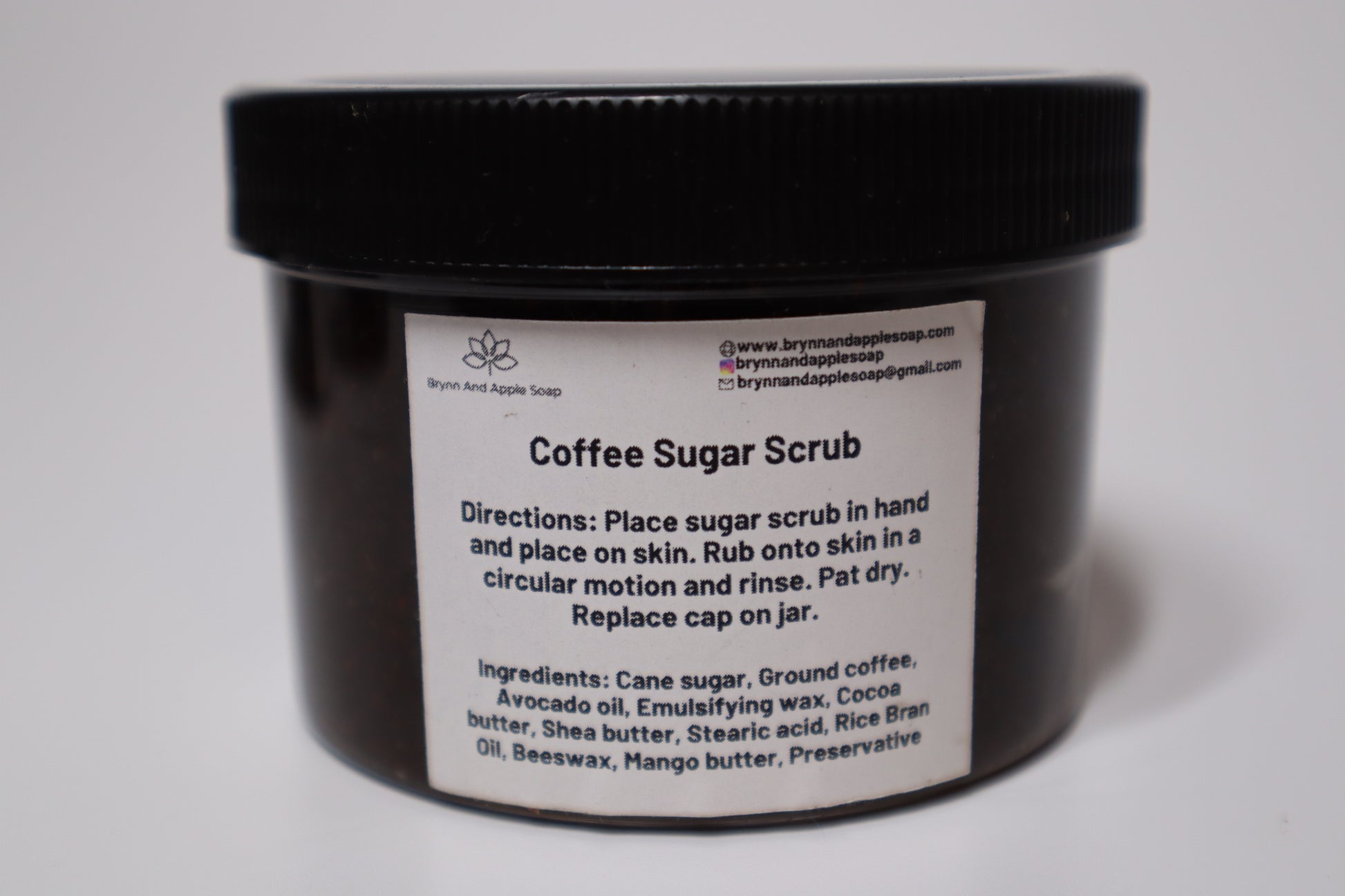 Ingredients: Ground Arabica Coffee, Rice Bran Oil, Sunflower Oil, Emulsifying Wax, Cane Sugar, Cocoa Butter, Shea Butter, Stearic Acid, Beeswax, Mango Butter, Preservative
